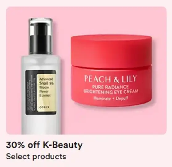 Hurry! Shop in store and get 30% off select K-Beauty products.