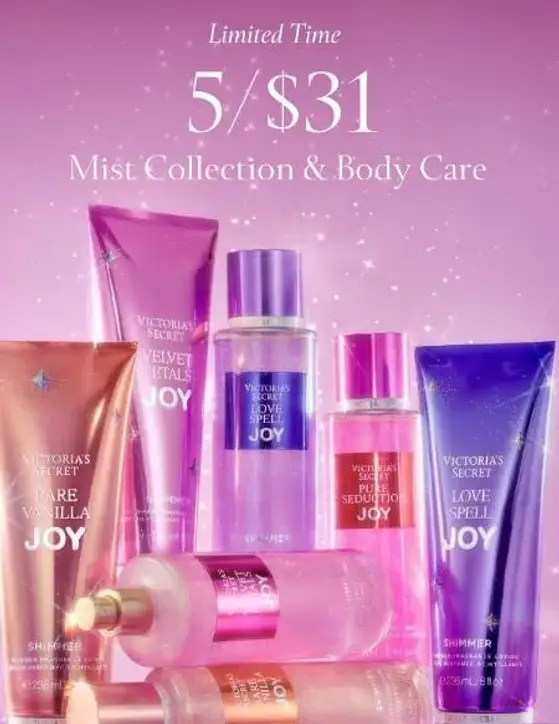 Hurry! Shop in store and get 5 for $31 Mist Collection & body care.